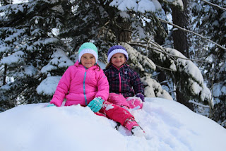 In the morning, there was about 6-8 inches of fresh snow. It was such a beautiful winter wonderland and the perfect setting for hours of snow play. The girls were chomping at the bit to get their snow clothes on and go exploring.